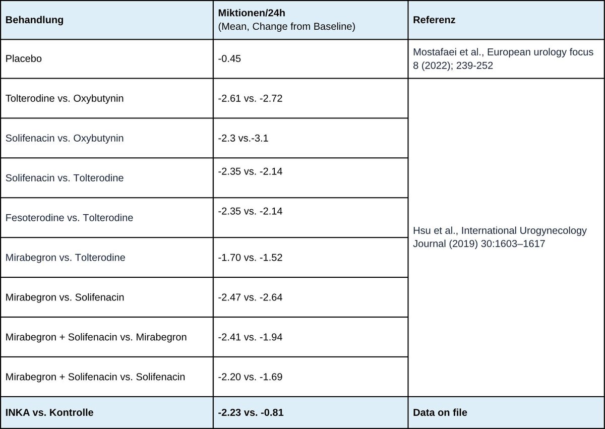- Nach 12 Wochen: Durchschnittlich 2,23 Miktionen weniger pro Tag